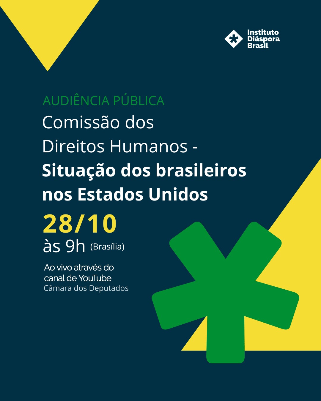 No dia 28 de outubro, a Comissão de Direitos Humanos, Minorias e Igualdade Racial da Câmara dos Deputados, por requerimento do seu Presidente, Deputado Reimont (PT/RJ), realizou uma audiência pública com o objetivo de debater a situação da comunidade brasileira nos Estados Unidos e as medidas necessárias de proteção consular, jurídica e humanitária.